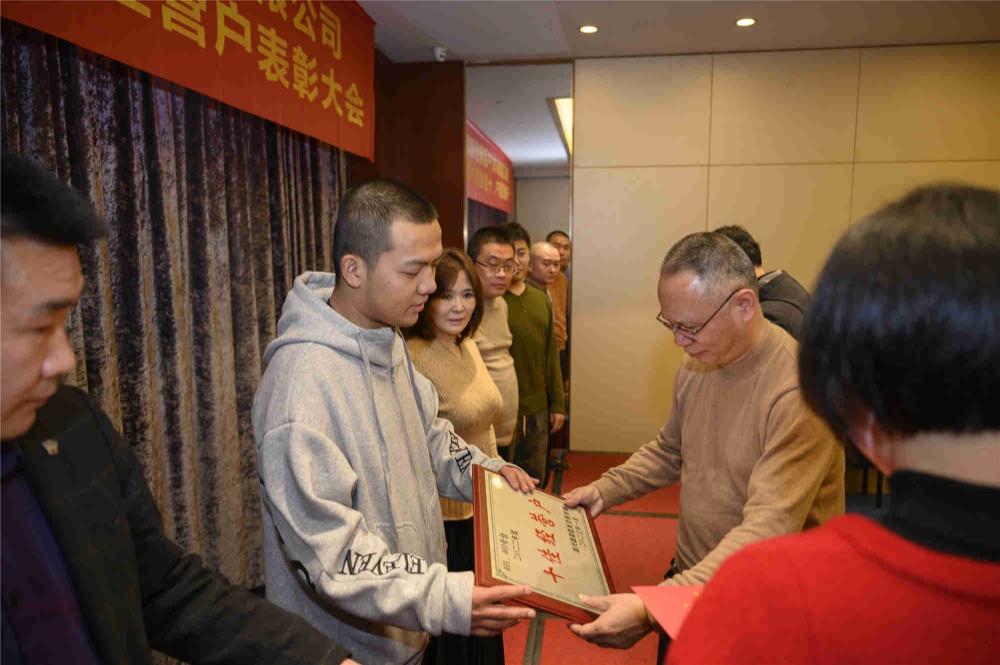 公司副總經(jīng)理胡喚、蔣周良、王國祥給十佳經(jīng)營戶頒獎。